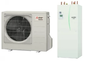 The new Mitsubishi Electric 4kW monobloc Ecodan heat pump system model QUHZ-W40VA with EHPT20Q-VM2EA thermal store combines market leading efficiency for instantaneous “DHW” hot water production hence removing the risk of legionella with a reliable heating solution for properties with a low space heating requirements, typically requiring only one heating zone.