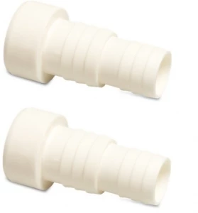 Hose Connector 50mm x 38mm – 32mm. These connectors allow you to directly attach either 38mm or 32mm swimming pool hose to the water inlet and water outlets of our ranges of swimming pool heat pumps. The connectors come in a pack of 2.